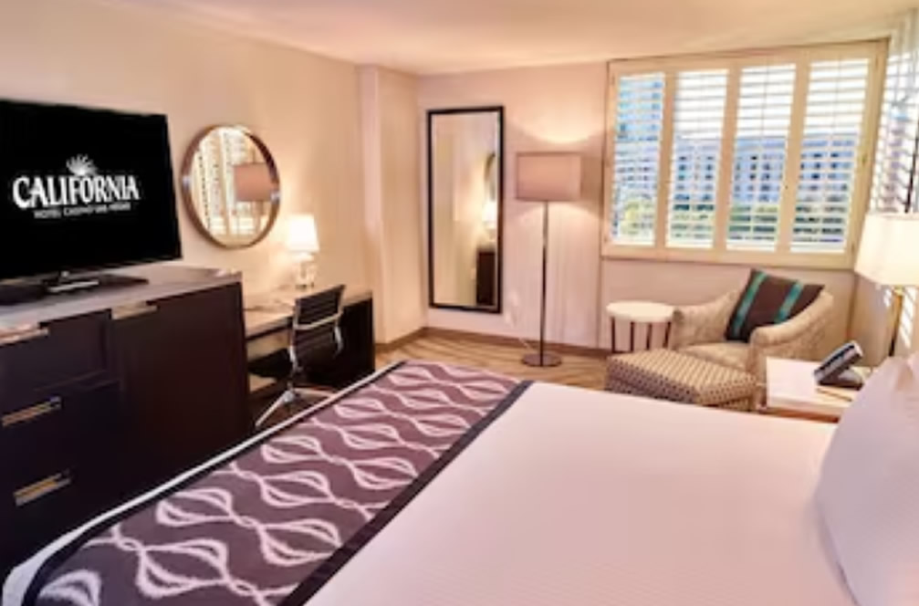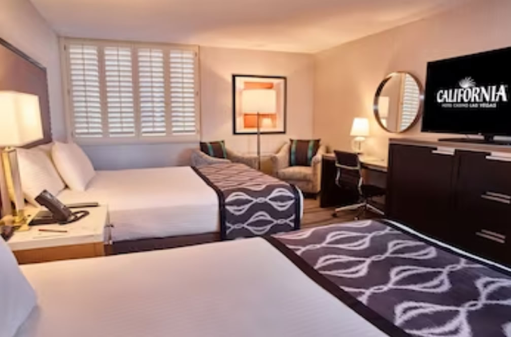 California Hotel Las Vegas Amenities – a race and sportsbook, a casino, multiple restaurants and bars, no resort fee, meeting and corporate convention facilities, Concierge, free Wi-Fi, dry cleaning/laundry services, a fitness center, parking, 24-hour front desk, airport shuttle, accessibility, an arcade/game room, seasonal rooftop pool, parking, room service, and Triple AAA, military, and senior discounts.