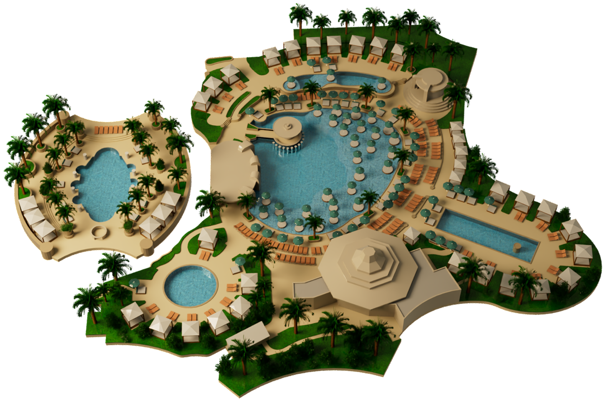 Caesars Sportsbook Fan Zone – a full-service bar overlooking the lagoon and the waterfalls.